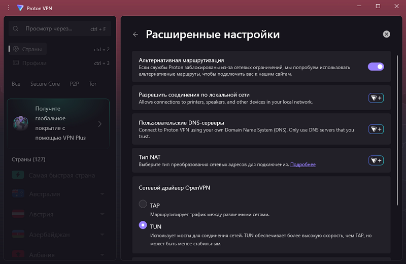 Основные возможности Proton VPN: