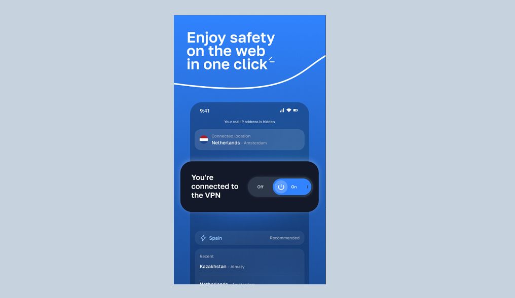 - Защищённое и зашифрованное подключение к интернету с изменением сетевого маршрута и IP-адреса.